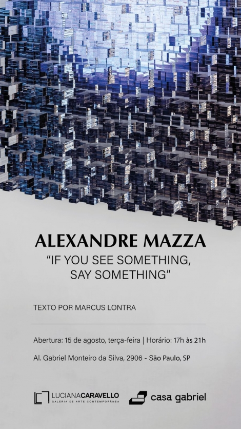 Em meio à efervescência no mundo artístico, Luciana Caravello Arte Contemporânea realiza a exposição intitulada “If you see something, say something”, individual do artista Alexandre Mazza. A mostra conta com a parceria especial da Casa Gabriel, espaço que se dedica ao apoio e desenvolvimento de projetos artísticos e culturais.